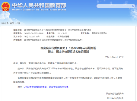 近日,《国务院学位委员会关于下达2020年审核增列的博士、硕士学位授权点名单的通知》(学位〔2021〕14号)正式公布。根据该文件,beat365英国官网网站新增3个一级学科博士学位授权点、3个一级学科硕士学位授权点和2个专业学位类别硕士学位授权点。其中,beat365官网应用经济学获批一级学科硕士学位授权点。