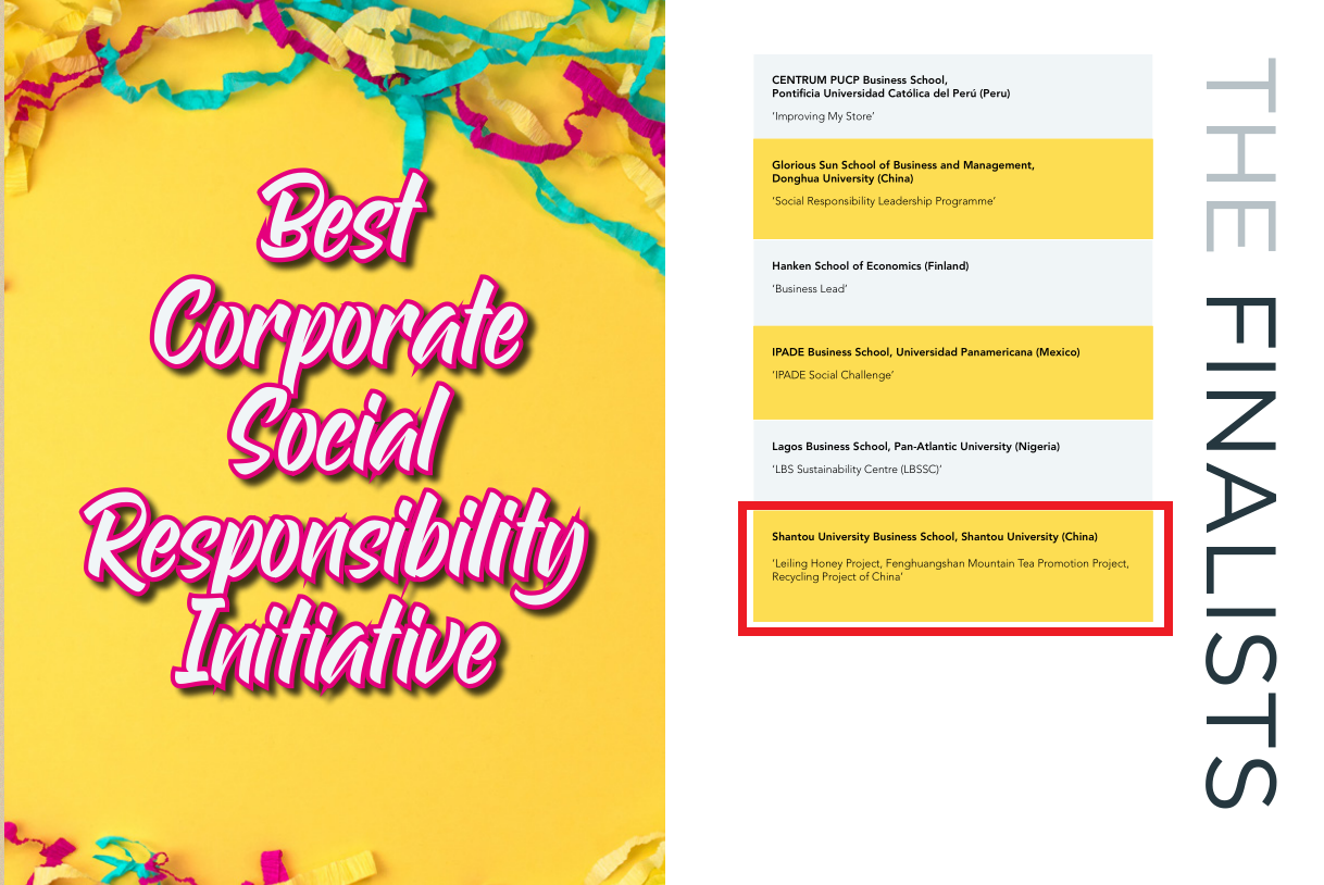 2021年1月29日,在线上举行的“国际工商管理硕士协会和商科毕业生协会(AMBA&BGA)卓越奖”云颁奖仪式上,beat365英国官网网站荣获最佳社会责任项目最终提名奖,这是beat365英国官网网站首次荣获AMBA&BGA卓越奖提名。