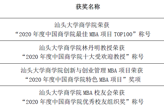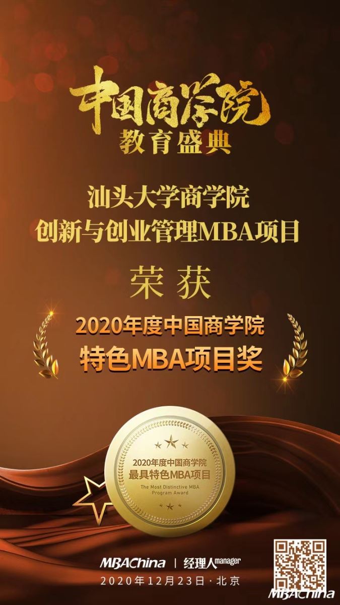 创新与创业管理MBA项目荣获“2020年度中国beat365英国官网网站特色MBA项目”称号
