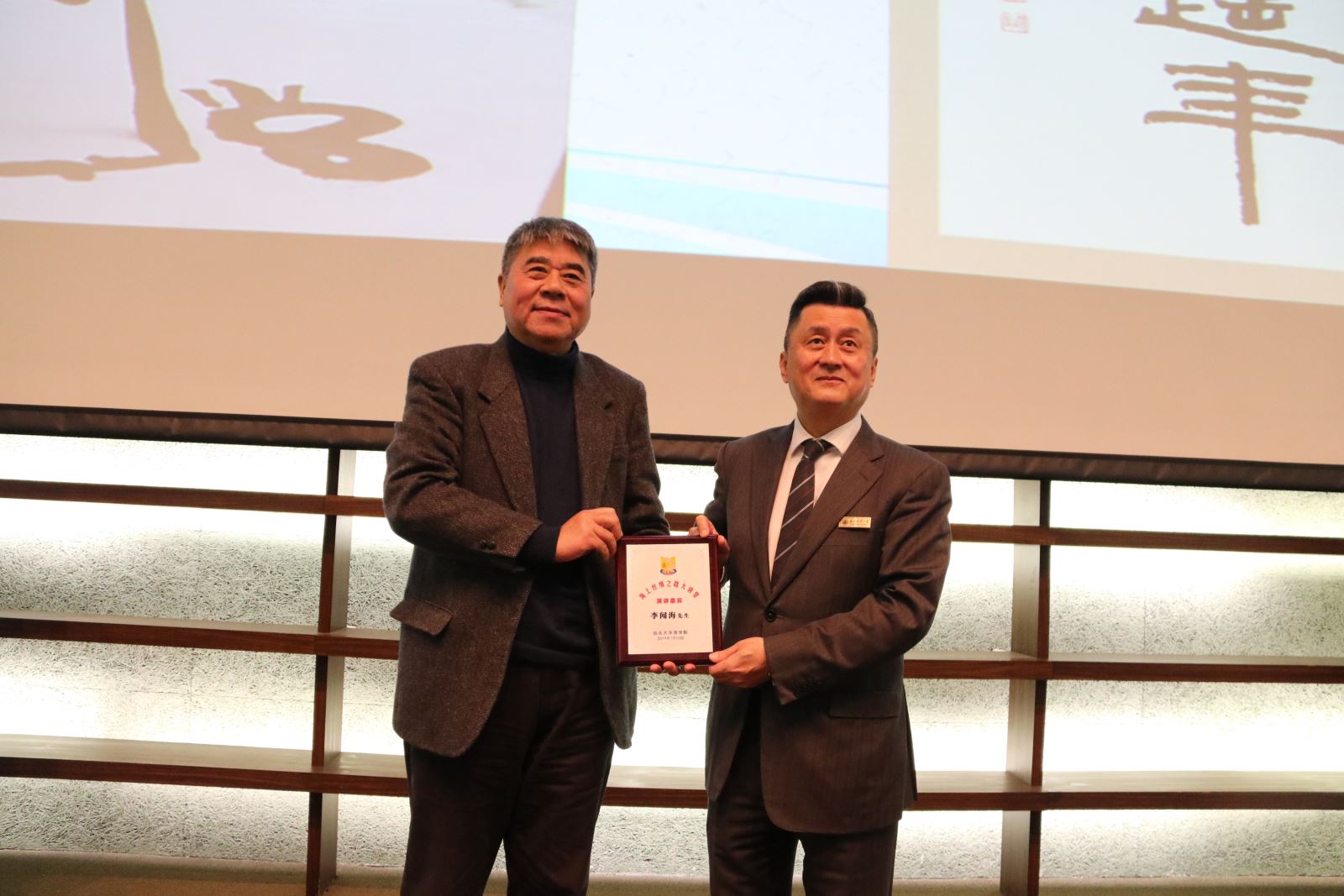 徐二明院长向李闻海先生赠送纪念牌
