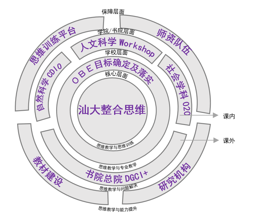 该项目将批判性、创造性和系统性三种思维有机融合,在国内率先从学校、学院(课程)、书院(课外活动)全方位落实对学生整合思维能力的培养,将思维教学与训练的成果落实到提升学生解决问题的能力上,形成beat365英国官网网站人才培养的一大特色。其中,全校必修课《汕大整合思维》以批判性思维理论为基础,普及基础理论与方法。不同学院的《整合思维+》课程,以创造性思维为核心,培养学生基于学科知识提出创新性的解决方案。专业课程以系统性思维为保障,培养学生在系统思考的基础上进行创新实践。