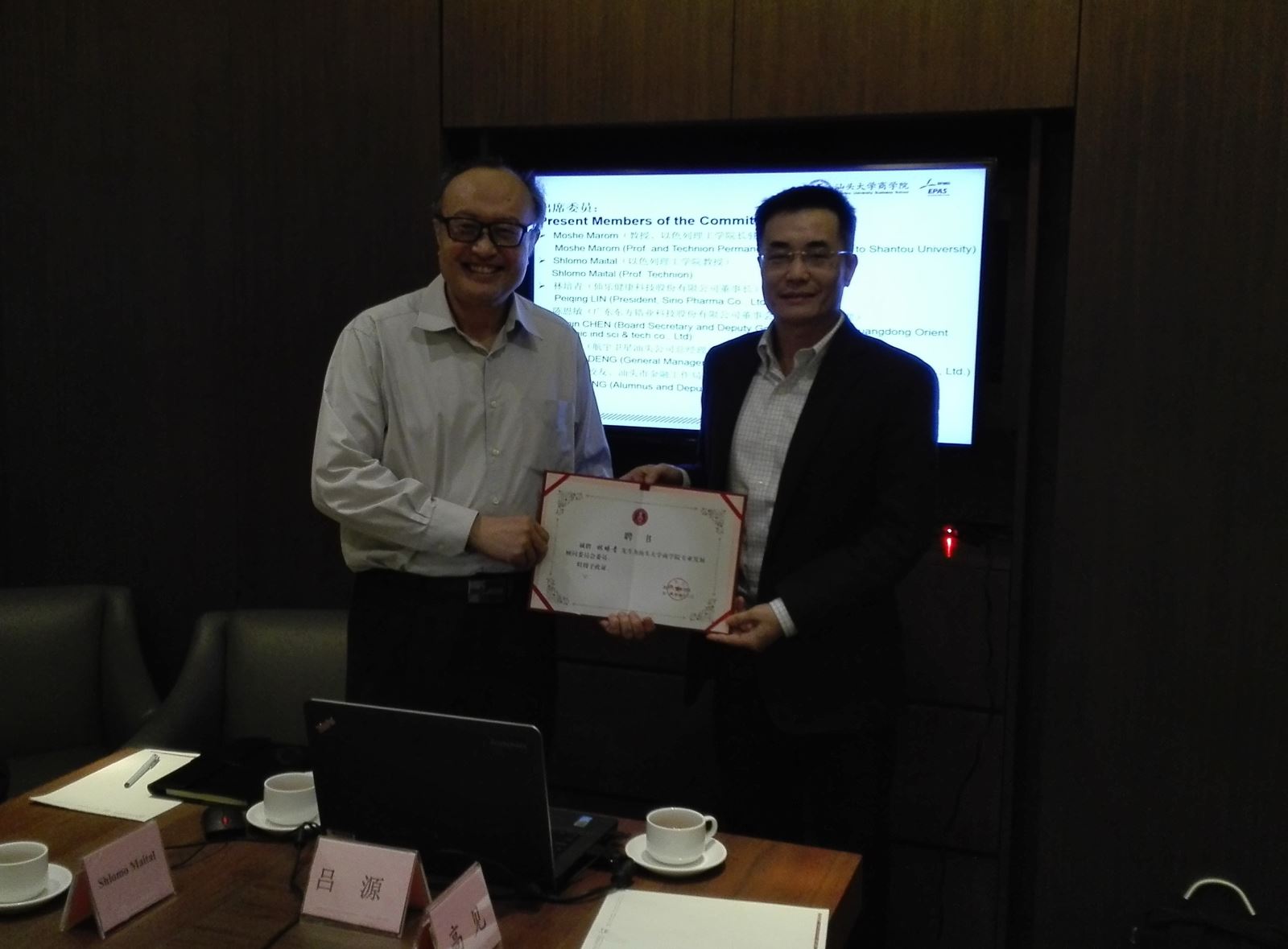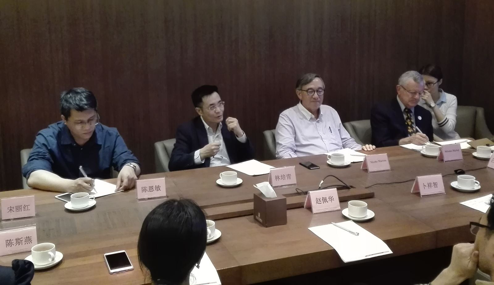 以色列理工学院Moshe Marom教授、Shlomo Maital教授,仙乐健康科技股份有限公司董事长林培青先生,东方锆业科技股份有限公司董事会秘书、副总经理陈恩敏先生,beat365英国官网网站院长吕源教授、党总支书记高见博士、副院长卜祥智教授,专业主任赵佩华教授、龙月娥副教授、宋丽红副教授、陈斯燕副教授等出席了会议。会议由吕源院长主持。