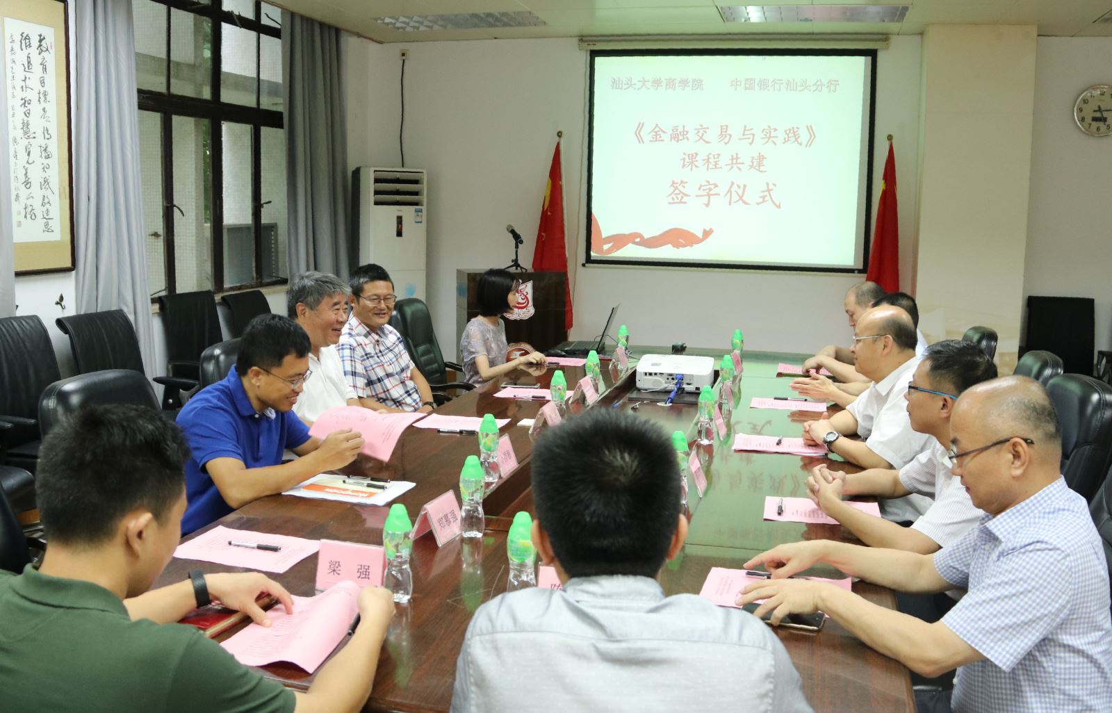 为进一步深化beat365英国官网网站与中国银行战略合作关系,构建和谐共赢的校银合作新模式,实现校银双方优势资源共享,建立起长期稳固的合作关系,beat365官网与中国银行汕头分行在成功合作举办第一期《金融交易与实践》课程共建的基础上,就第二期联合共建课程达成合作协议。2019年9月4日下午5时,双方在beat365官网学术研讨室举行第二期《金融交易与实践》课程共建合作签约仪式。