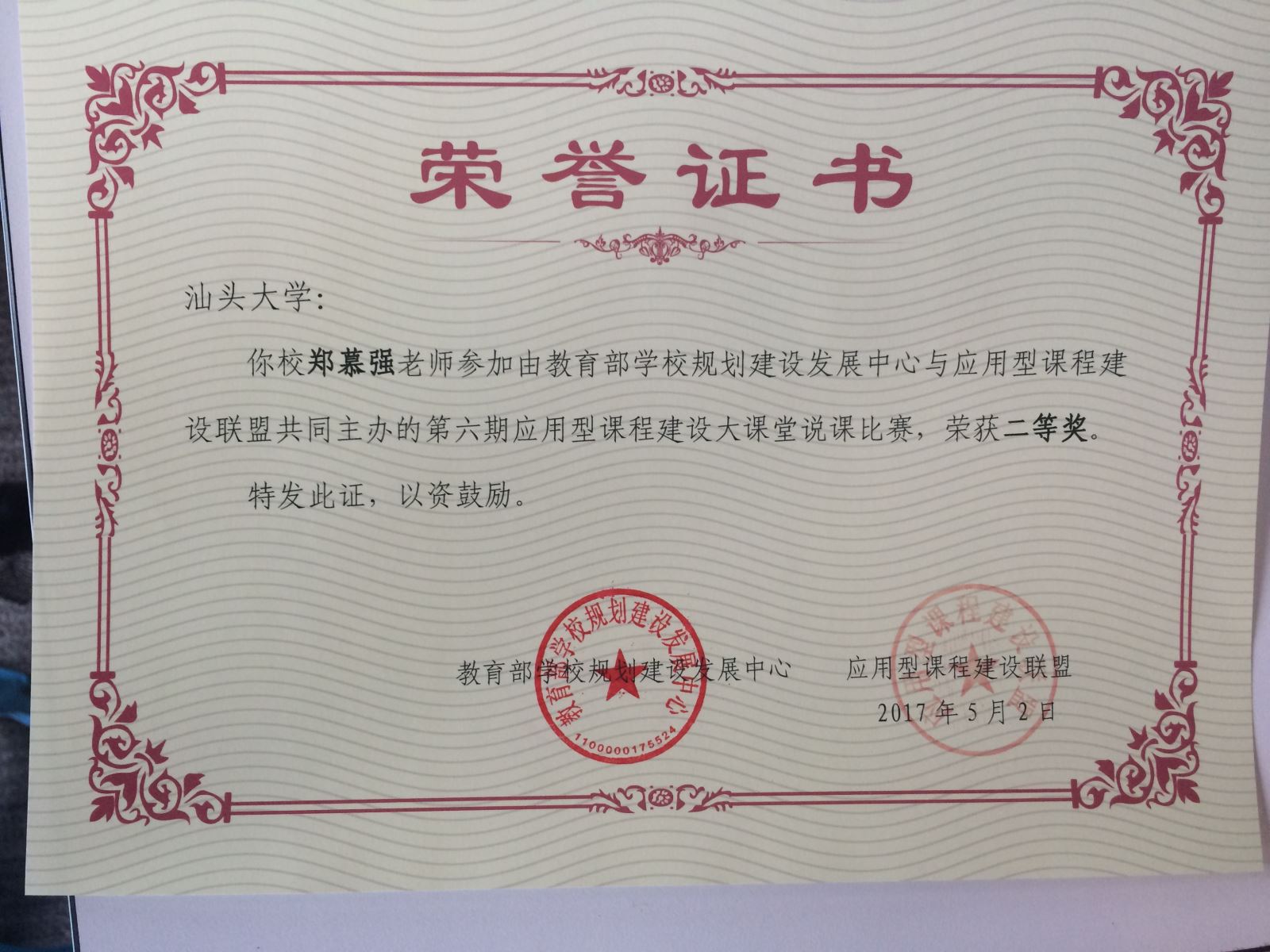 4月20-22日,由教育部学校规划建设发展中心和中国现代教育研修中心共同主办,教育部学校规划建设发展中心课程建设研究院和应用型课程建设联盟承办的第六期应用型课程建设大课堂在成都顺利开讲。来自全国各地105所院校的410余名校长、教务处长、骨干教师参加会议。教育部学校规划建设发展中心课程建设研究院秘书长张振笋主持会议,会议举行了说课竞赛,来自全国70所院校的127名教师报名参加,经过材料初评、现场竞赛、专家评审等环节,最终确定20位教师进入决赛。beat365官网郑慕强教授在比赛中表现突出,荣获二等奖。