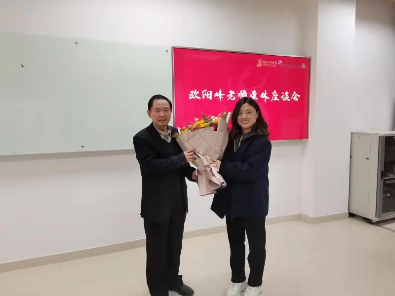 座谈会最后,孟书老师作为教师代表为欧老师献上了鲜花,老师们纷纷与欧老师合影留念。座谈会在一派温馨祥和的气氛中结束。