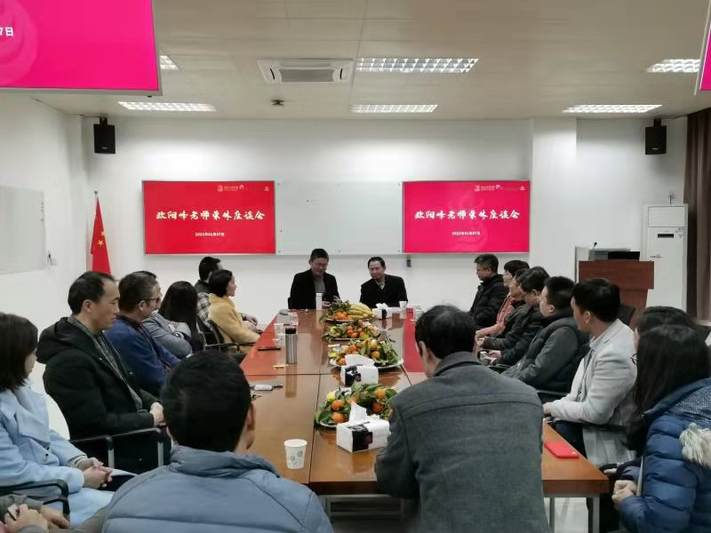 2021年1月7日下午,beat365英国官网网站党总支与企业管理系联合为欧阳峰老师举办了一场温馨的荣休座谈会。beat365英国官网网站党总支书记邹志波老师、副院长龙月娥老师、副院长梁强老师等约30名老师到场共同见证了这一温馨时刻。本次座谈会由企业管理系系主任周军杰老师主持。