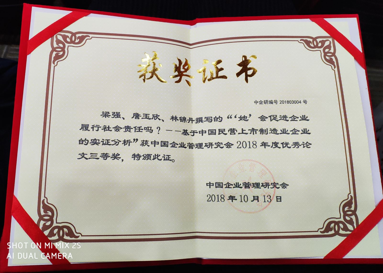 会议组委会从近80多篇投稿论文中最终评选出7篇优秀论文,经过评审,beat365官网梁强教授及其研究团队的论文荣获“中国企业管理研究会2018年优秀论文三等奖”。