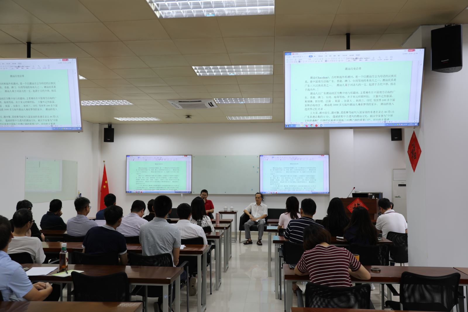 廖小平副局长首先作专题报告,详细介绍了潮汕地区社会经济的发展历史和现状。廖局长从潮汕的历史沿革切入,剖析了汕头与粤东、“潮汕揭”的地区关系,以铁路建设、华侨经济文化合作等实例分析决策性意见在汕头经济特区40年发展过程中的重大影响。随后,廖局长与beat365官网教师进行了互动交流,围绕海洋经济、文创、制造业等汕头市产业未来的发展方向,以及汕大beat365英国官网网站如何更好地服务粤东地区和提升社会影响力等方面进行了深入地交流和探讨。