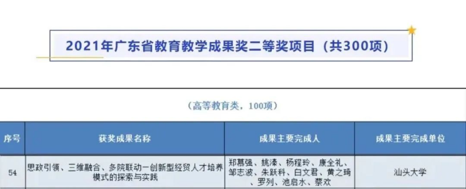 beat365官网郑慕强老师主持的教学成果《思政引领、三维融合、多院联动——创新型经贸人才培养模式的探索与实践》,获2021年广东教育教学成果奖二等奖,延续beat365官网教师在近三届省级教学成果奖评选中都有获奖的记录。