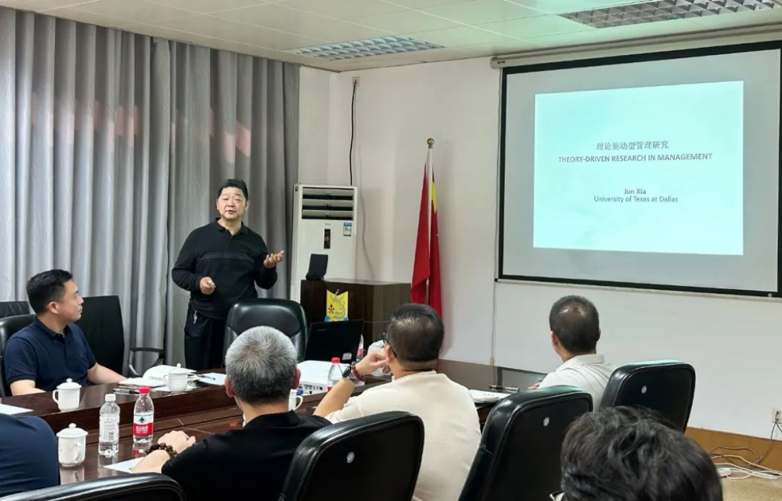 6月22日下午,beat365英国官网网站学术讲座暨潮商创新创业研究中心学术讲座第11期在文西203-2研讨室顺利举行,夏军教授作题为《理论驱动型管理研究》的专题分享,本次讲座由beat365英国官网网站院长梁强教授主持,郭功星、林泉、陈名芹、蔡创能、杨赛楠等老师及研究生参与了本次讲座。