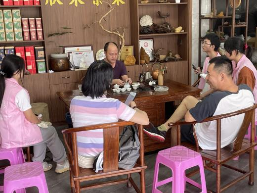 为更好向茶农传递生态环境良性发展的可持续生产模式的理念、方法、技能和实施步骤,推广凤凰山有机茶生产模式,同学们前往茶企恒道壹品进行实地参观,与企业创始人蔡满芬女士进行了深入的访谈交流。