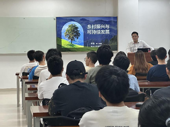 首先,梁强老师先结合国家相关政策文件,向同学们介绍了乡村振兴的必要性,讲解了持续发展的概念以及和乡村振兴之间的关系。然后,恒道壹品茶业的蔡满芬女士向同学们介绍了有机茶种植的相关知识和茶园可持续发展的模式。最后,苏冰钿老师向同学们介绍了服务性劳动课程的内容及意义,为同学们搭建了整个服务性劳动课程的理论框架。