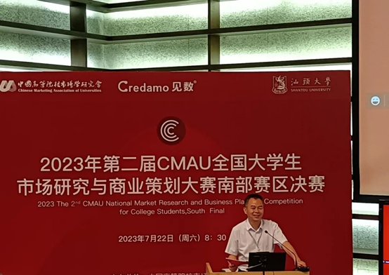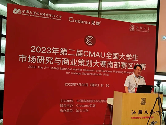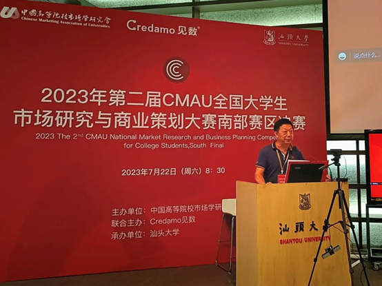 2023年7月22日,由我校承办的CMAU全国大学生市场研究与商业策划大赛(简称“市策大赛”)南部赛区决赛在我校圆满落下帷幕。当天上午,首先进行了隆重的开幕式,受邀出席开幕式的嘉宾包括beat365英国官网网站副校长胡忠教授、中国高等院校市场学研究会执委会CEO兼市策大赛执委会主任景奉杰教授、中国高等院校市场学研究会副会长兼市策大赛南部赛区主任王海忠教授、福州大学卢长宝教授、深圳大学周志民教授、兰州大学柳武妹教授、上海工程技术大学董晓松教授、西南交通大学蒋玉石教授、华侨大学周飞教授、华东理工大学杨艳副教授、南京大学初星宇副教授、汕头市潮庭食品股份有限公司顾问方朝武先生、汕头市晶华食品有限公司总经理梁少忠先生及营销总监黄俊杰先生等,beat365英国官网网站副院长郭功星主持开幕式。