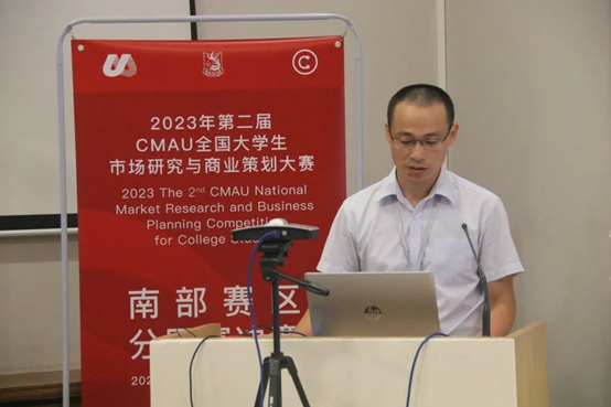 闭幕式最后,由景奉杰教授作总结讲话并宣布闭幕,他对本次南部赛区的决赛工作顺利开展并取得圆满成功表示祝贺,对所有获奖的同学与指导老师表示祝贺,希望晋级全国总决赛的团队能够调整好状态去迎接更加严峻的挑战,并预祝取得好成绩。至此,第二届CMAU全国大学生市策大赛南部赛区决赛圆满落幕。