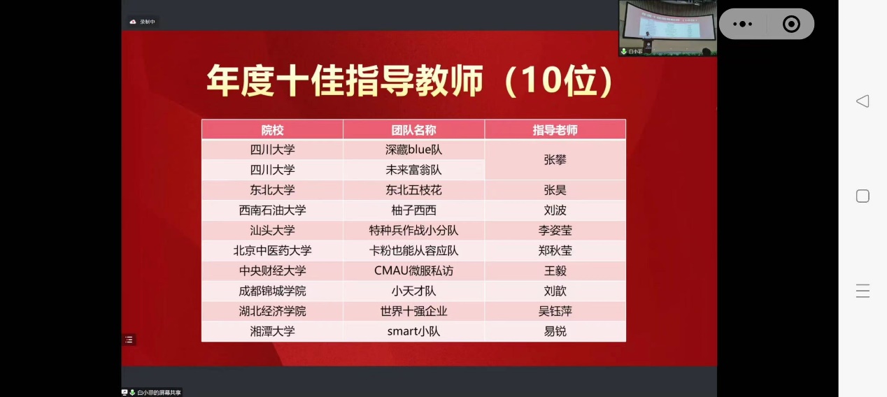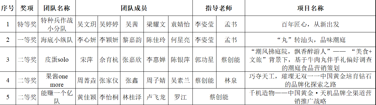 近日,由中国高等院校市场学研究会(CMAU)和Credamo见数联合主办的第二届全国大学生市场研究与商业策划大赛(简称“市策大赛”)全国总决赛在东北大学落下帷幕。在指导老师的悉心指导下,经过校赛、分区赛层层选拔,我校五个参赛团队突出重围,挺进全国总决赛。在总决赛的激烈角逐中,我校团队表现出色,最终获得特等奖一项(赛事最高奖,全国仅十项)、一等奖一项、二等奖三项,充分展现了我校学子的优秀风采和扎实的市场研究与商业策划能力。李姿莹老师荣获“年度十佳指导教师”,李姿莹、孟书、林泉、蔡创能、郭功星等五位老师荣获“优秀指导教师”。