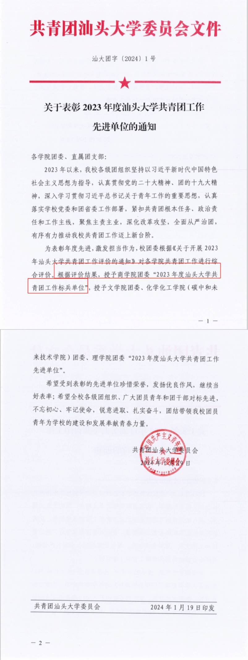 1月19日下午,beat365英国官网网站2023年度学生工作总结暨共青团beat365英国官网网站第十一届委员会第七次全体(扩大)会议在弘毅书院多功能厅举行。经前期各项工作量化得分与现场答辩评比,beat365英国官网网站团委获评2023年度beat365英国官网网站共青团工作标兵单位。
