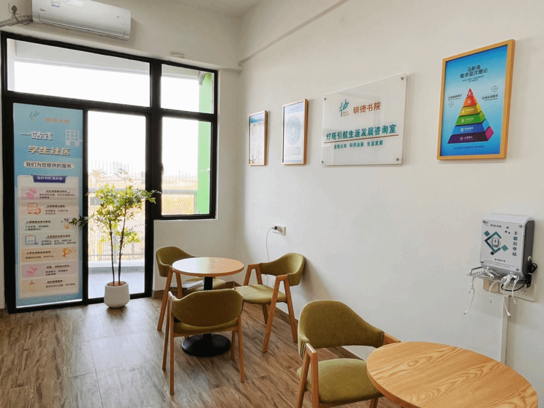 宿生入住后,明德书院改造工作有条不紊地展开,持续深入打造“相伴•成长”的“一站式”学生社区。目前已完成学生自习室、自助服务室、研讨室、多功能厅、电商直播实训室等功能空间改造,书院门面、电梯间出口等书院文化布置也让整个书院面貌焕然一新。