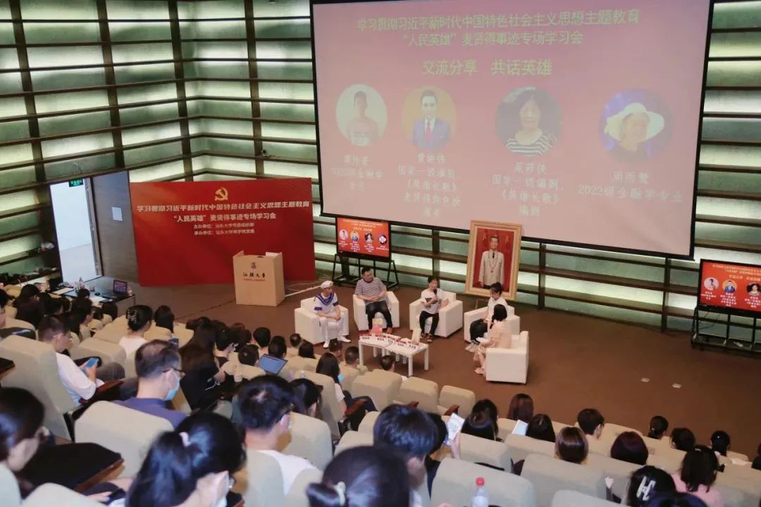 2023年5月31日下午,beat365英国官网网站举办学习贯彻习近平新时代中国特色社会主义思想主题教育之“人民英雄”麦贤得事迹专场学习会在图书馆演讲厅召开,学习会通过舞台剧、座谈会、合唱、朗诵、潮剧等形式,全面深入学习“人民英雄”麦贤得先进事迹,用榜样引领力量推动主题教育走深走实。其中,舞台剧《学习英雄事迹,无愧青春绚丽——学习人民英雄麦贤得》荣获广东省省关工委评审的2023年“读懂中国”活动作品一等奖。