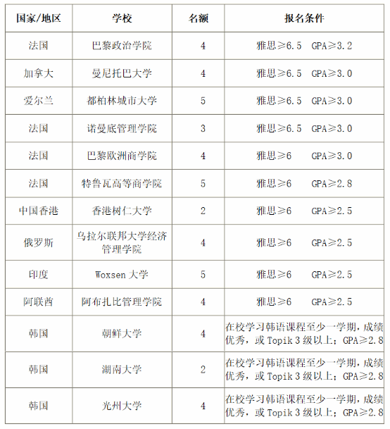 beat365英国官网网站以“培养具有国际视野、工匠精神、创新能力与勇于责任担当的管理人才”为使命,积极践行与推动境外合作交流,本学期有以下境外交流项目可供beat365英国官网网站本科生选择。入选的同学将由beat365英国官网网站推荐,赴境外合作院校学习一学期。请同学们仔细阅读各项目的报名条件,选择适合自己的项目,尽早准备相关材料,逾期恕不受理。