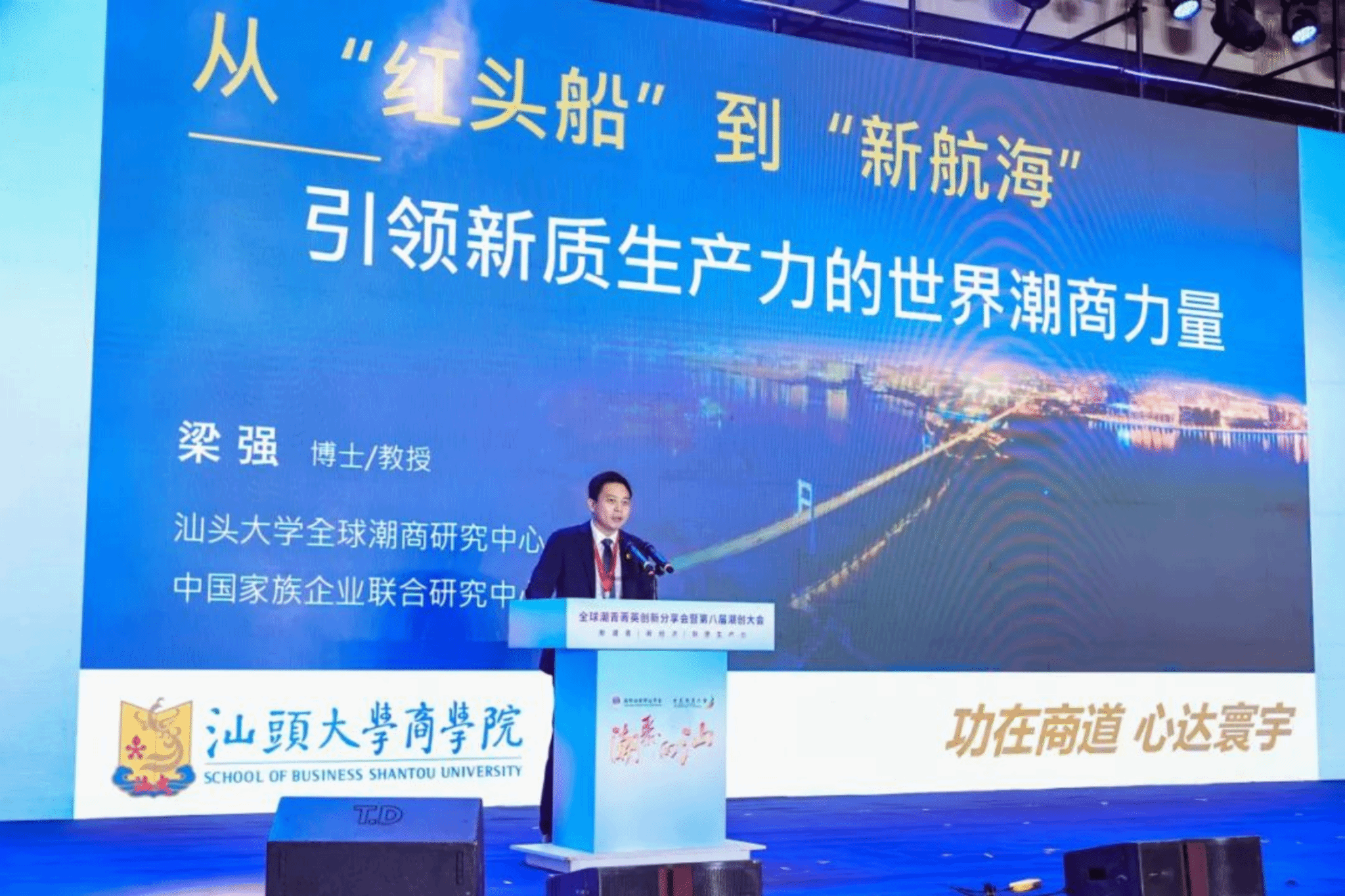 11月19日,全球潮青菁英创新分享会暨第八届潮创大会在汕隆重举行。本次会议由第二十二届国际潮团联谊年会、第十届世界潮商大会(简称“两大盛会”)筹备工作委员会指导,汕头市工商业联合会(总商会)、共青团汕头市委员会、汕头市发展和改革局、汕头市投资促进局、全球潮人创新经济促进会、国际潮青联合会共同主办,铭胜控股协办。汕头市委领导、全国相关行业领域专家学者、企业家代表及资深投资人等近1000余人参加会议。beat365英国官网网站院长、全球潮商研究中心主任梁强教授受邀出席大会《世界潮商企业发展研究报告蓝皮书》发布仪式并作主题演讲。