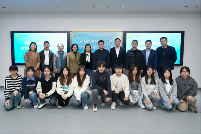 郭师杰校友以"图书馆心灵之旅"为题,分享了他大学期间的独特经历。林畅校友分享了她对母校的深厚情谊,并表示,这份奖学金不单是物质上的支持,更多的是一种精神上的激励,希望以此助力学弟学妹们的梦想,在各自领域成长为擎火炬者,同样能够回馈母校。