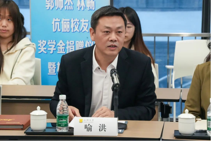 喻洪副校长代表学校欢迎校友们回到母校,对两位校友一直以来关心支持母校建设发展表示感谢。喻校长表示,校友们铭记学校的培育之恩,把对学校及学院的真挚情感与深切感恩化作实际行动,慷慨捐赠,无私奉献。校友们的善举为学校发展提供了源源不断的力量,喻校长期望商院学子牢记商院精神,铭记校友期许,以先进为榜样,以优秀和灵活为实用,锤炼实干本领,精心规划学业,用心经营未来事业,不负韶华,收获更加辉煌灿烂的明天。