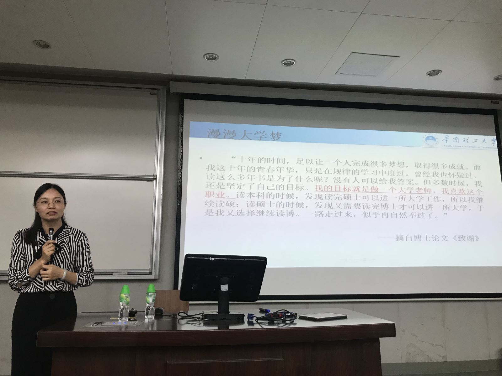 何爱副教授从自己大学本科讲起,谈及自己当初也是感到很迷茫,但发现自己所爱之后,就坚定了考研考博的决心。她还谈到了徐宗玲教授,博士生导师和博士后导师对其重大的人生影响。徐宗玲教授让何爱老师认识到女性也可以当自强,也可以非常有魅力,当然博士也不是个问题,从而坚定了何老师对考研考博的信心。博导的“24小时随时联系”的话语让何老师非常感动,而且博导还教会了他无论做什么事情都要用批判的眼光去看,态度非常重要。博士后导师则犹如一位老父亲一样,对她的影响无微不至,所以直到现在何老师都会经常看望他。
