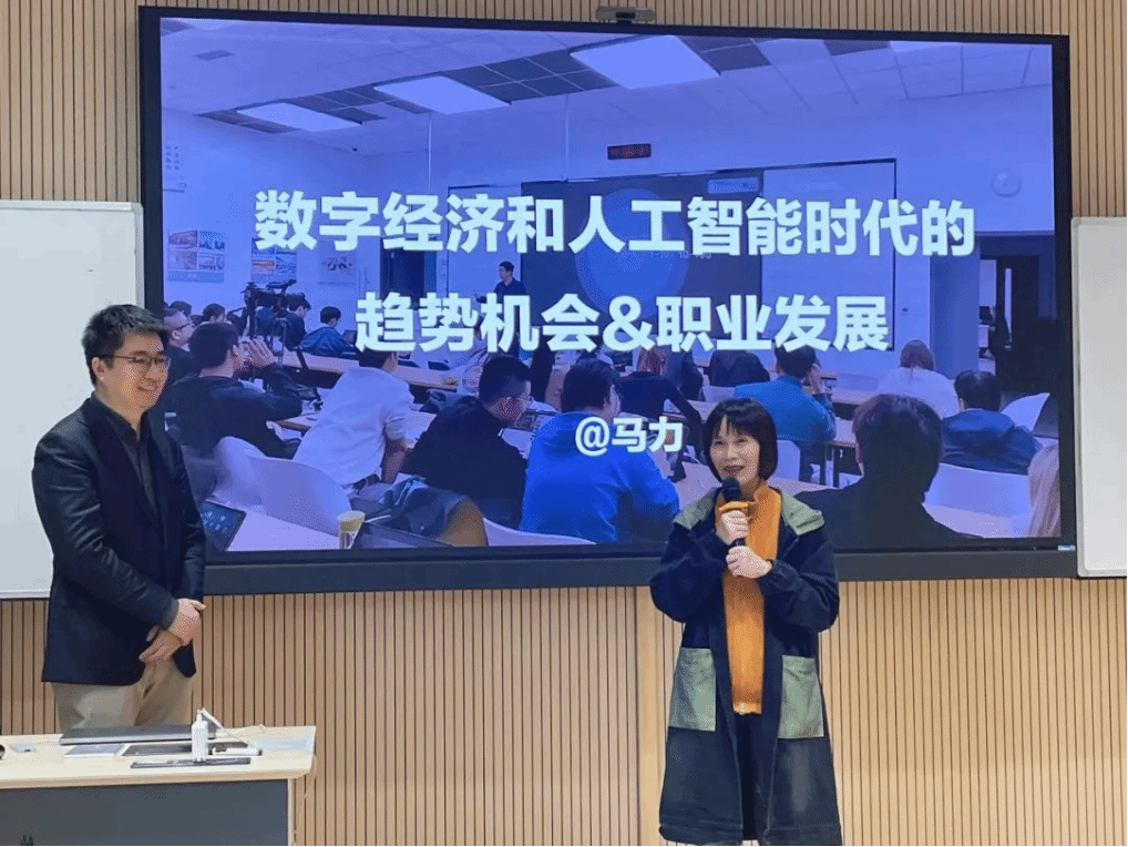 在数字浪潮奔涌不息、人工智能技术迭代加速的当今时代,为助力学生精准触摸时代的律动,清晰洞见人工智能与数字经济的前沿走向,深入发掘其中潜藏的广阔职业发展机遇,beat365英国官网网站于2024年12月25日在beat365英国官网网站东海岸校区E栋教学楼128教室开展人工智能专题讲座之“数字经济和人工智能时代的趋势机会与职业发展”。本次讲座邀请到了“知群”CEO,B站知识区UP主、B站课堂优质讲师马力作为主讲嘉宾,讲座由beat365英国官网网站副院长龙月娥主持,全院各专业100多位学生参加了本次讲座。
