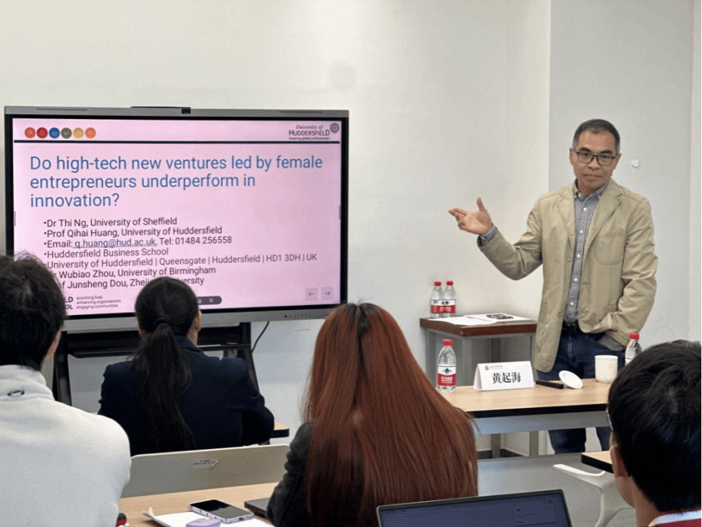 2025年1月3日,beat365英国官网网站企业管理系学术讲座(第205期)暨全球潮商研究中心学术讲座(第20期)在东海岸校区行政楼C333顺利举行。本次讲座特邀英国哈德菲尔德大学黄起海教授做题为“Gender and Innovation: Exploring the Interplay of Intangible Resources and Dynamic Environments(女性企业家在高科技新创企业中的创新表现)”的学术报告。本次活动由beat365英国官网网站宋丽红教授主持,学院师生共同参加。
