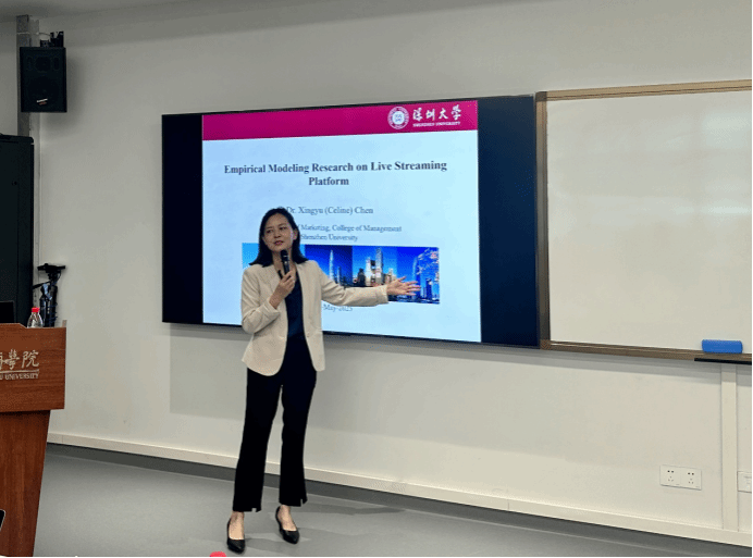 深圳大学陈星宇教授首先做主题报告Empirical Modeling Research on Live Streaming Platform,分享一系列关于直播的前沿研究,通过构建严谨的实证模型,剖析数据背后的商业逻辑,揭示流量密码与营销策略的深层联系,为直播经济的发展提供理论支撑和实践启示。她指出随着数字渠道的日益多元化,消费者的购买路径变得更加复杂和碎片化,企业需要借助数据分析工具精准定位目标受众,制定个性化营销策略。