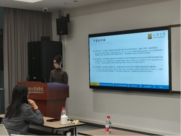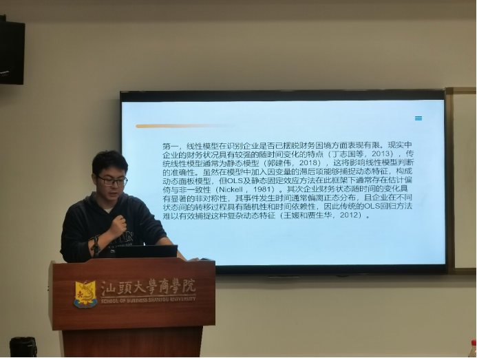 在论文点评环节,应用经济系研究生王松名和刘瑛蕾依次进行论文工作汇报。本次汇报的主题分别为《数字化转型总是能帮助企业财务脱困吗?基于多状态生存分析视角的新发现》及《Greening the Polluters: How Green Loan Interest Subsidies Policy Drives Heavy-polluting Firms’ ESG Performance》。刘嘉教授对每篇论文均进行详细点评,并提出建设性的修改意见。