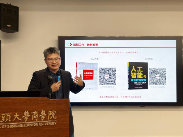 接着,beat365英国官网网站周军杰教授带来了题为《“机器学习+计量经济模型”:一种社会科学研究的新范式》的专题分享。周教授首先向在座师生阐述了社会科学研究的三要素:客观事实、科学理论与方法技巧。随后,他系统介绍了“机器学习+计量经济模型”这一融合性研究框架。该模型基于机器学习的方法,从大数据中提取具有高度上下文意义的信息,并通过实验研究设计与计量经济建模,为商业、消费者及社会等领域的政策分析与决策支持提供了系统、可操作的研究路径。
