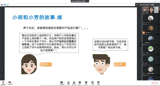 在最后的问答环节中,同学提出了工商管理专业应聘数据分析师是否会受专业限制等问题,杨游云女士对同学提出的问题耐心地进行解答。本次讲座杨游云女士用简介清晰的语言,形象生动的案例为同学们入门数据分析及培养数据思维提出了极具指导性的建议,为同学们进一步探索数据分析提供了借鉴。
