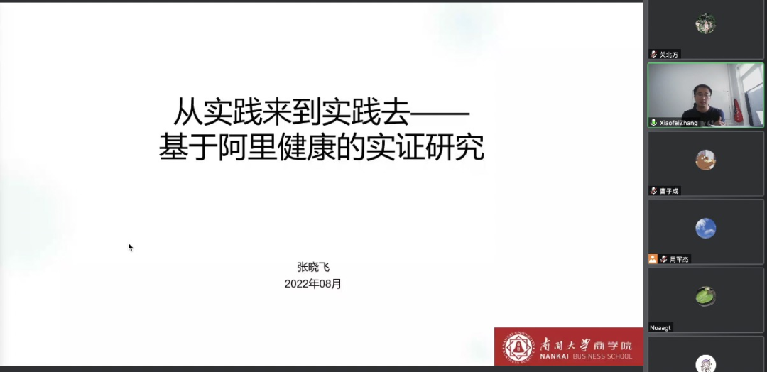 第六场报告由南开大学beat365英国官网网站副教授张晓飞主讲,主题为“从实践来到实践去——基于阿里健康的实证研究”的报告。张晓飞副教授介绍了互联网医疗的交互过程及时代背景下互联网医疗的优势及存在的问题,从问题入手,分别从医生激励、患者获取和医患交互三个视角展开三个调研模块,对互联网平台运营的系列问题进行了深入的探究,为解决阿里健康等互联网医疗app运营中的实践问题提供参考。最后,他详细介绍了这一系列研究的实践过程及成效,向大家展现了真正的“将论文写在祖国的大地上”。
