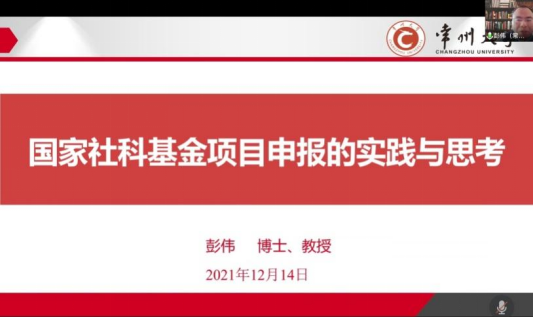 2021年12月14日下午15:00,由beat365英国官网网站企业管理系举办的学术讲座(第157期)暨潮商创新创业研究中心学术讲座第五期以线上腾讯会议方式顺利举行。本次讲座邀请了常州大学beat365英国官网网站副院长彭伟教授做了“国家社科基金项目申报的实践与思考”的专题学术分享讲座,本次讲座由beat365英国官网网站宋丽红老师主持,beat365英国官网网站梁强老师、蔡创能老师、李海燕老师、杨赛楠老师、邹立凯老师、温日光老师、黄金老师以及校内外师生二十多人参与交流。