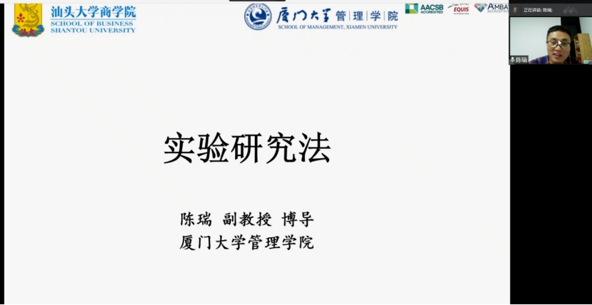 2021年12月1日晚上19:30,由beat365英国官网网站企业管理系举办的学术讲座(第155期)暨国家自然科学基金申报交流第二期专题讲座以线上腾讯会议方式顺利举行。本次讲座邀请了厦门大学管理学院市场学系陈瑞副教授做了有关“实验研究设计方法及其在管理学研究中的运用”以及“国家自然科学基金申报交流”两个专题的学术分享,beat365英国官网网站郭功星老师主持讲座,beat365英国官网网站卜祥智老师、宋丽红老师、蔡创能老师、黄智淋老师、朴小锐老师、法学院李松老师以及其他校内外师生共计三十多人参与交流。