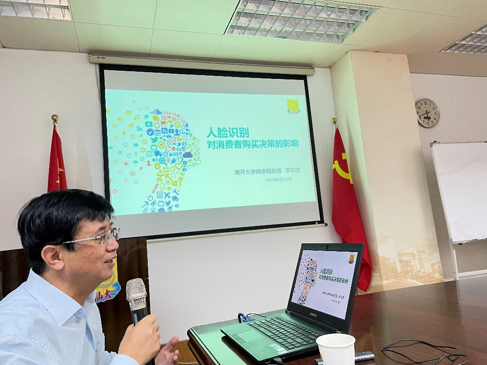2021年11月19日上午,beat365英国官网网站企业管理系学术讲座第154期在beat365英国官网网站二楼学术研讨室举行,本次讲座邀请了南开大学beat365英国官网网站李东进教授做了题为“人脸识别对消费者购买决策的影响”的学术分享,由系主任周军杰老师主持,卜祥智老师、郭功星老师、邹宗保老师、蔡创能老师、李海燕老师以及beat365英国官网网站研究生及本科生等五十多人参与了本次讲座。