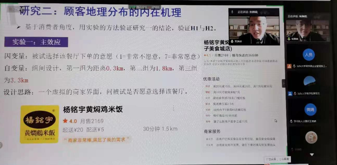 四位青年学者围绕创新创业、大数据驱动的供应链及网络营销汇报了各自的最新研究进展。来自同济大学的谢智敏博士作了题为“制度环境、创业者特质与创新型创业”的报告,陈屏国博士进行了点评并给与了积极的建议。来自上海海事大学的刘婵娟博士汇报了其最新研究“Maritime convection and fluctuation between Vietnam and China: A data-driven study”,基于港口货运数据分析了中国与越南之间的贸易变化及政策启示,邹宗保博士进行了点评并给出了可能的改进建议。来自哈尔滨工业大学的张雪燕博士汇报了题为“社会资本对跨学科研究团队知识整合的影响机制研究”,李海燕博士进行了点评并探讨了未来可能的研究方向。来自中国人民大学的焦腾啸博士汇报了“外卖零售商线上顾客地理分布规律及内在机制研究”,基于外卖大数据分析了线上顾客的分布规律及内置机制,郭功星博士给与了积极肯定并给出了未来研究的建议。