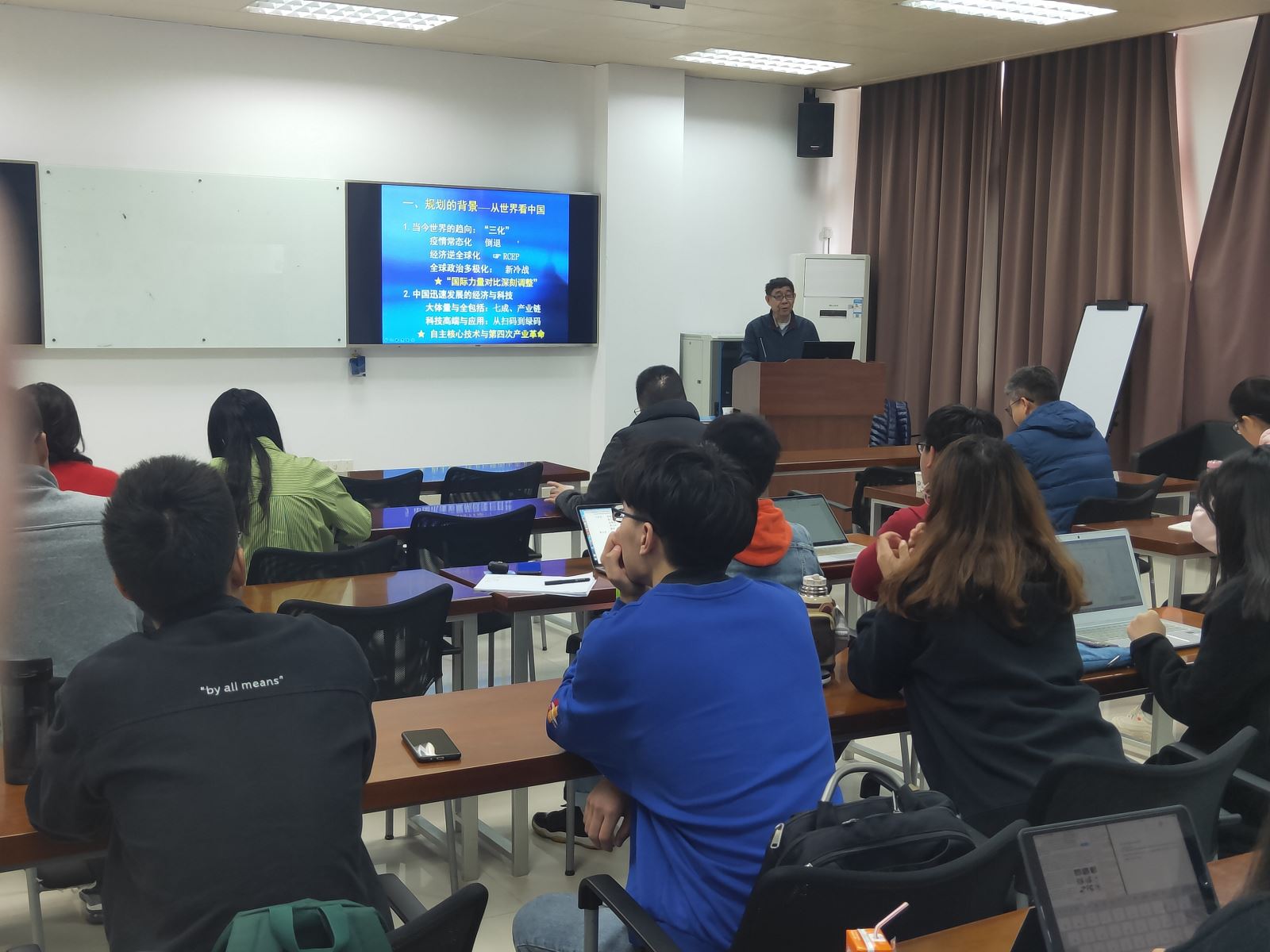 在场师生认真听取了姚教授的报告。讲座最后,姚教授与在场师生进行互动与交流。