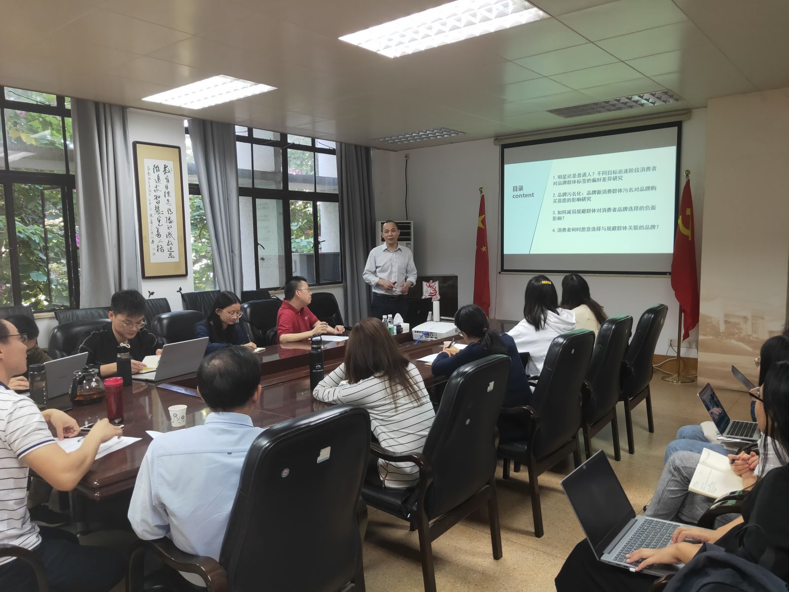 2020年11月6日上午,beat365英国官网网站双周学术讲座(第四期)在beat365英国官网网站二楼学术研讨室举行。来自暨南大学管理学院的杨德锋教授担任本次讲座的演讲嘉宾,为beat365官网师生分享了主题为《消费者对品牌群体标签的偏好研究》的学术报告。本次活动由beat365官网郭功星老师主持,欧阳峰、宋丽红、李姿莹和蔡创能等老师及学院研究生、本科生同学参加了本次学术交流活动。