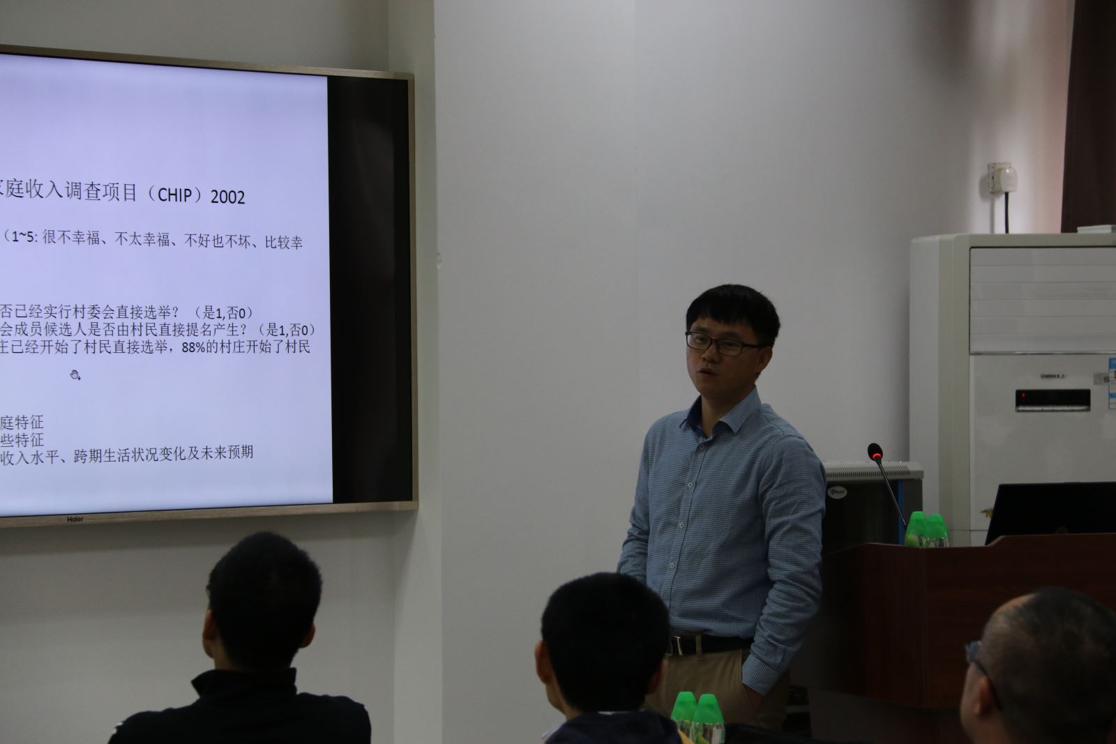 第三位来自厦门大学的叶茂亮老师通过使用中国家庭收入调查(CHIP)2002年的数据,在控制个体和配偶特征和家庭特征的基础上,研究了村民幸福感的来源和影响机制问题。