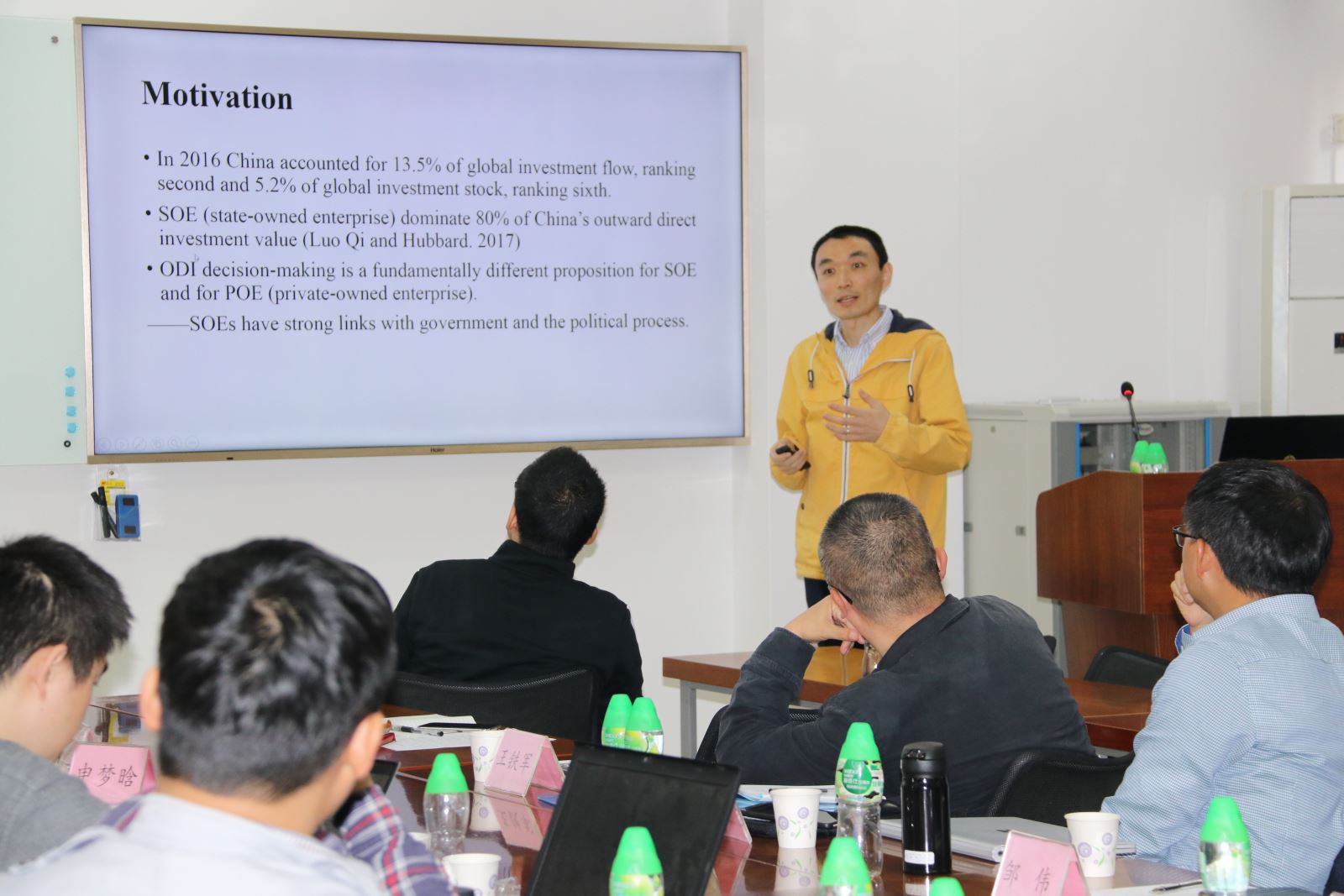 第四位来自beat365英国官网网站的齐震老师报告了《China's Anti-corruption Campaign Causes Overseas Direct Investment Slowdown》。运用2005-2015年企业层面的面板数据,研究了反腐倡廉对大型国企直接海外投资水平的影响。以及这种影响在不同层级国企和不同东道国的异质性。