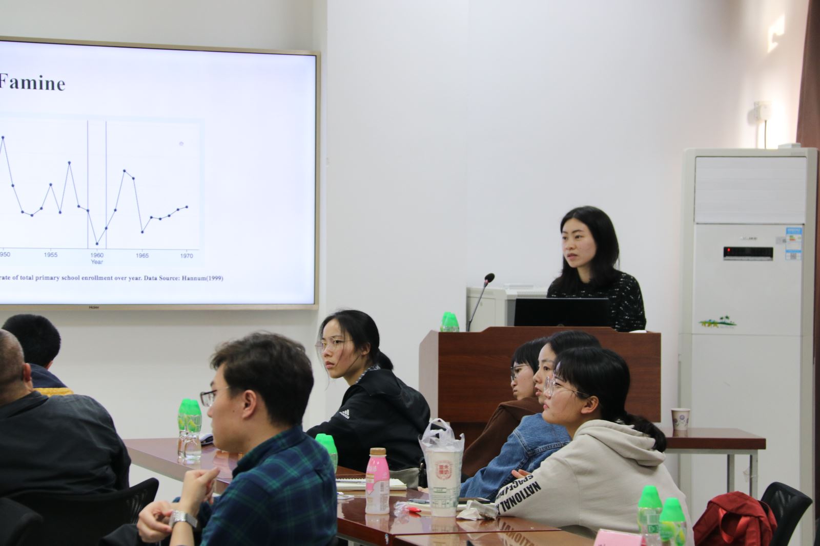 第八位来自武汉大学的甘煦博士生报告了《Education and Financial Literacy: Evidence from the Great Famine in China》。通过匹配大饥荒(1959-1961)与CHFS2013数据,本研究为教育与金融素养的因果关系建立了连接,受教育水平平均每提高1年,金融知识提高37.46%;该效应在男性、未受经济学专业学习以及东部地区更为明显;同时,该研究也为大饥荒造成的长期效应提供了除营养不足以外的另一渠道的观察。