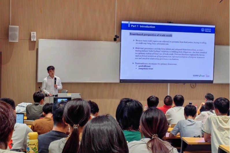 接着,邹鸿辉博士做了题为“Political Connections and Firms’ Trade Credit in Emerging Economies”的主题分享。邹博士以企业信贷为核心,从基于信任的角度探讨了贸易信贷的决定因素。研究旨在通过研究政治联系如何影响新兴经济公司授予和获得贸易信贷的能力来填补这一空白。这项研究揭示了政治关系对平等社会雇员在与上游和下游伙伴的交流中给予和接受贸易信贷的能力的负面影响。