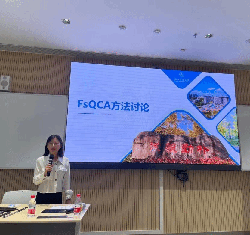接着,方溪博士做了题为《QCA研究方法与应用》的专题指导。她分别从“什么是QCA研究方法”、“QCA研究方法如何搜集数据”、“设计QCA矩阵”、“如何进行QCA方法的数据分析和结果解释”以及“QCA方法在研究中应用”等五个方面进行了精彩、专业的指导和分享,让大家受益匪浅。