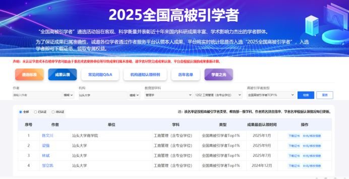 近日,中国知网下属的中国科学文献计量评价研究中心基于中国知网收录的国内学术成果,发布“2025全国高被引学者”名单,旨在客观、科学衡量并表彰近十年来国内科研成果丰富、学术影响力杰出的学者群体。