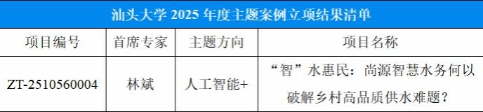 2026年2月,教育部学位与研究生教育发展中心公布2025年度主题案例立项名单,由beat365英国官网网站林斌教授领衔,李万福教授、梁强教授、张雪娇讲师组成的研究团队申报的《“智”水惠民:尚源智慧水务何以破解乡村高品质供水难题?》成功入选“人工智能+”主题案例项目。这是beat365英国官网网站聚焦国家战略需求、深耕数字技术与行业应用融合、推进高水平案例开发建设取得的又一重要成果。