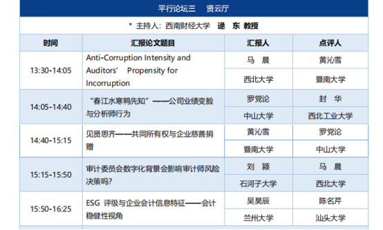 平行论坛上,陈名芹副教授就论文《ESG 评级与企业会计信息特征——会计稳健性视角》进行了相应点评,并与其他参会人员进行了充分的讨论和交流。会议现场学术氛围浓厚,讨论交流热烈。