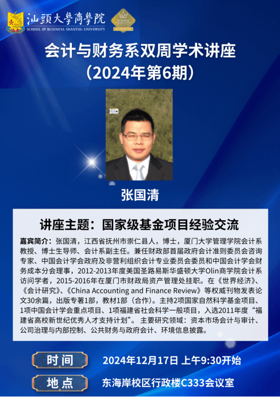 演讲嘉宾:张国清 教授(厦门大学)